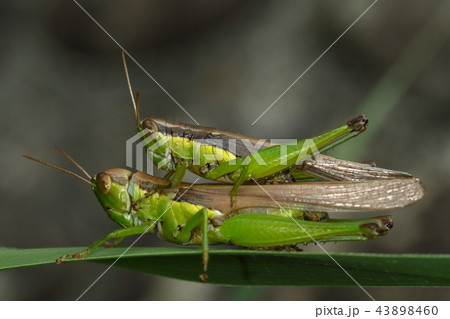 生き物 昆虫 ハネナガイナゴ、交尾中。圧倒的にメスが大きくがっちり体形です