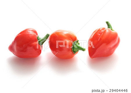 白バックの真っ赤な激辛唐辛子のハバネロ