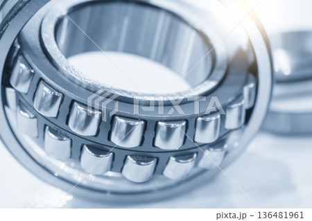 Close Up Rolling Bearing Parts with Blue Tone Lighting Effect in Industrial Scene