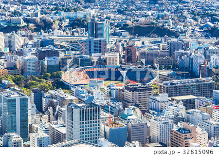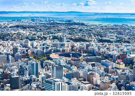 日本の横浜都市景観 横浜スタジアムなどを望む