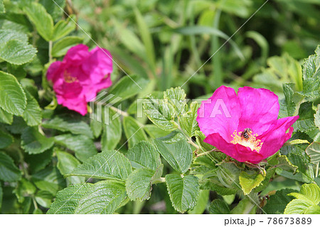 植物 ローズの野生種のハマナスの花 ローズの香りよりローズのにおいがするハマナスの花のトゲは痛い