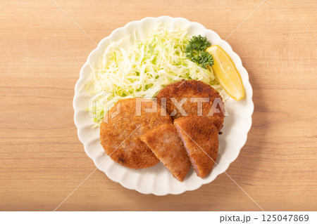 揚げたての薄切ハムカツ【白背景・切り抜き】