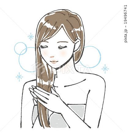 ヘアトリートメントを使用する女性イラスト