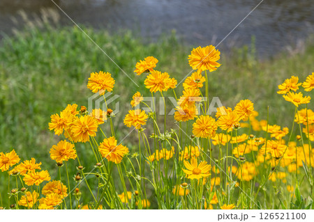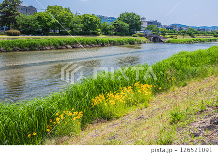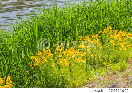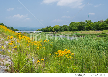 鴨川の川原に咲くオオキンケイギク(特定外来生物) 京都市