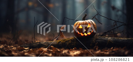 Happy Halloween day with ghost candies, pumpkin, bowl and decorative. Trick or Threat, Hello October, fall autumn, Festive, party and holiday concept