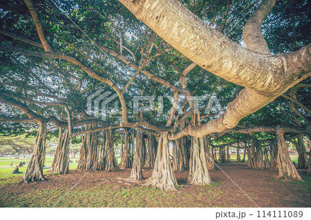 ハワイ、カピオラ二公園にある大きなバニアンツリーの木