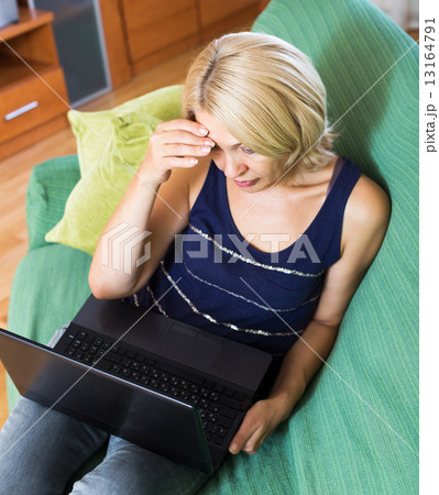 Weak woman snuffling in the bedroom