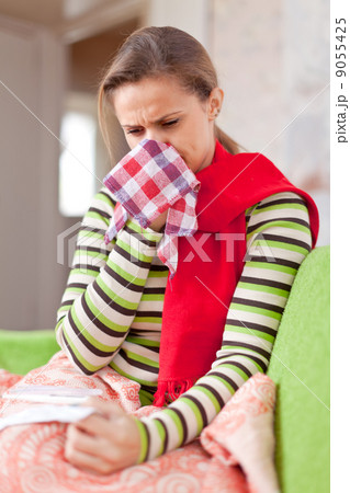 illness woman uses handkerchief