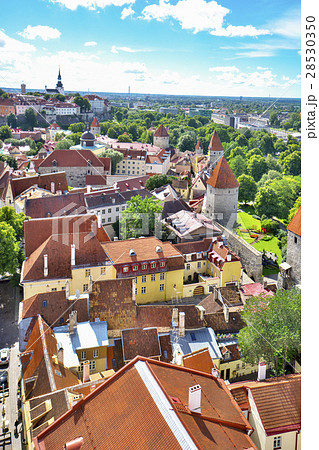 エストニアの首都タリン 世界遺産の旧市街 聖オレフ教会から望む