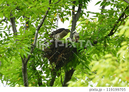 純白のヒナが目立つ、身近な公園で出会える日本で最も小さなタカ、公園のハンターのツミ