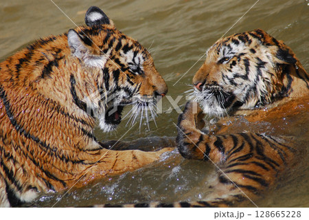 兄に張り手で反撃するトラの弟