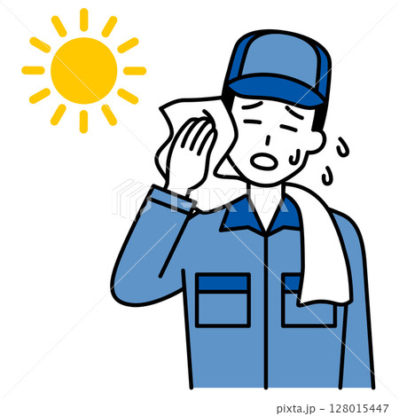 猛暑イメージ 汗を拭く男性 ハンディファン
