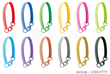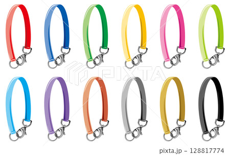 カラフルなリング&カニカン付きハンドストラップキーホルダーパーツのベクター素材イラストセット