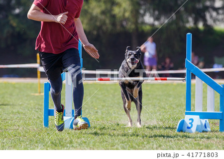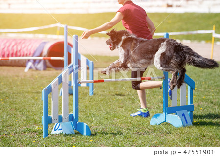 Dog running its course on dog agility sport