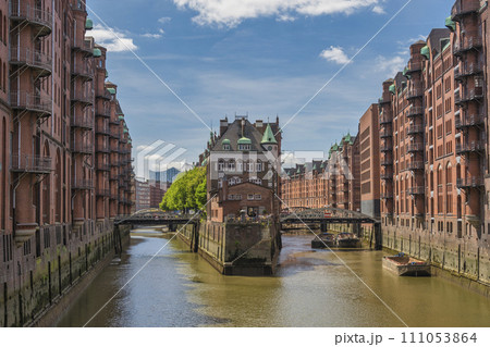 Hamburg, German. View of famous Speicherstadt warehouse district.
