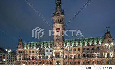 Building of the Hamburg City Hall day to night timelapse hyperlapse, the seat of the government of Hamburg, Germany