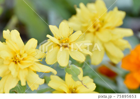 三鷹中原に咲く黄色いヒャクニチソウ(ジニア)の花