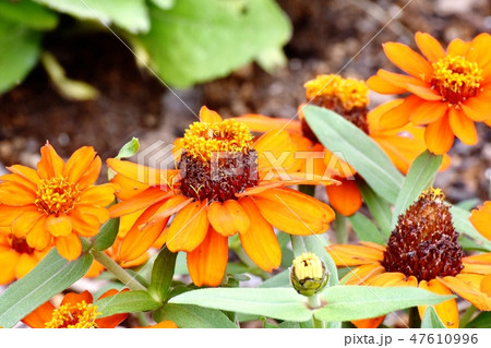 三鷹中原に咲くオレンジ色のヒャクニチソウ(ジニア)の花
