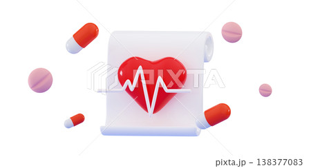 3d Cardiology concept Pulse beat measure Heart rate icon Red heart