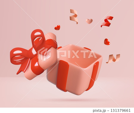 Red gift box opened empty inside and exploding with hearts and confetti 3d realistic illustration