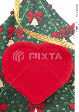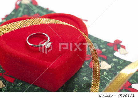 クリスマスプレゼントのダイヤのリングと赤いハートの小箱