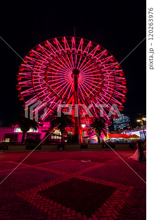 神戸ハーバーランド、モザイク大観覧車のライトアップ、10月17日、日本