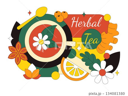 Label Design Herbal Tea Flat Cartoon Hand Drawn Background Illustration