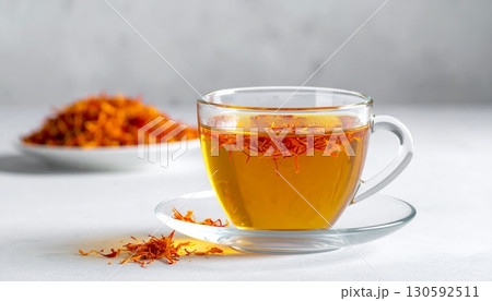 Safflower Tea in Clear Glass with Minimalist Background