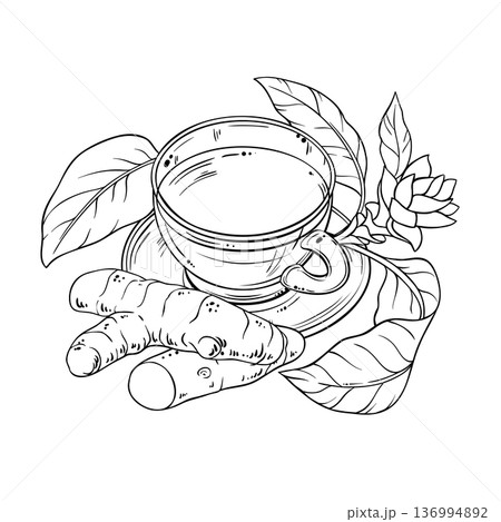 Cup of Turmeric Tea Outline Illustration.