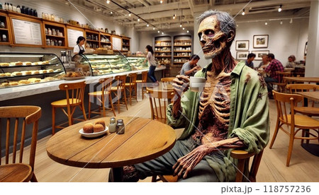 カフェでくつろぐゾンビ