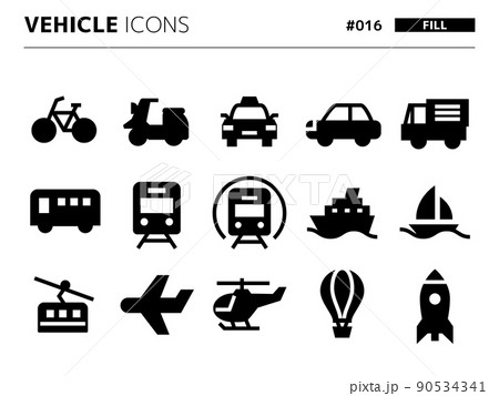乗り物に関連する塗りつぶしスタイルのアイコンセット_016
