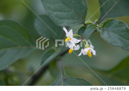 イヌホオズキ ナスに似た白い小さな花とそのつぼみ