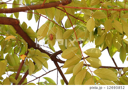 セミノヌケガラとバクチノキの葉
