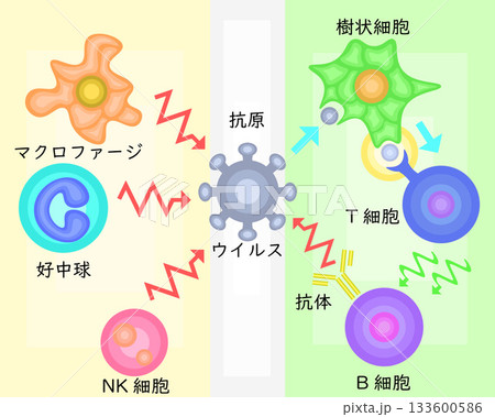 自然免疫と獲得免疫 イラスト 日本語