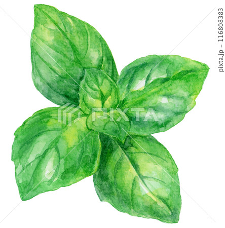 水彩で描いたバジルのイラスト