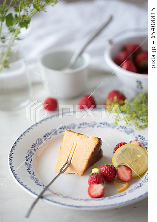 ブルーベリーソースのかかったベイクドチーズケーキ