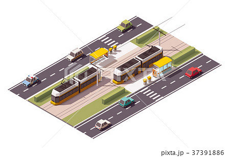 Vector isometric tram station