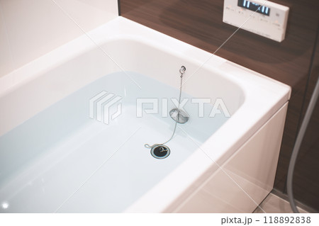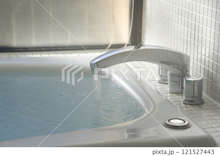 お湯がはられた風呂の写真。バスタイムのイメージ。