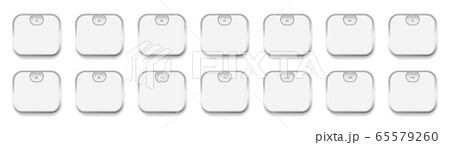 Personal scales with different body weight display from 10 to 140. White personal scales set with silver frames. Isolated vector illustration on white background.
