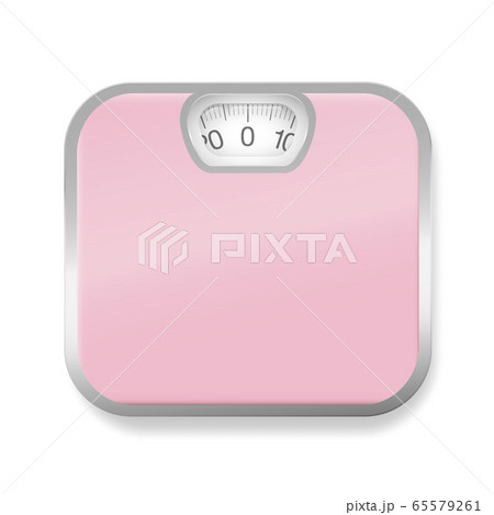 Pink bathroom scales with silver frame. Isolated vector illustration on white background.