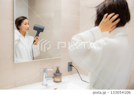ヘアドライヤーを使う女性