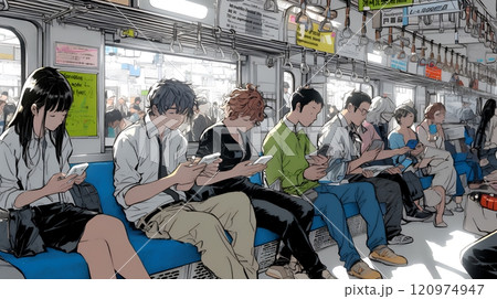 電車に乗車している全員がスマホをいじっている