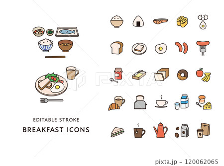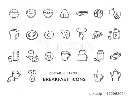 朝ごはんにまつわるアイコンセット(モノクロ)