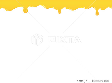 垂れる蜂蜜・バター・チーズ・オイル・マーマレード・インクのイラスト 黄色ストライプ地 A-03