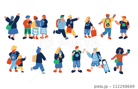 インバウンドや旅行をイメージする人々のシンプルでフラットな手書きイラスト