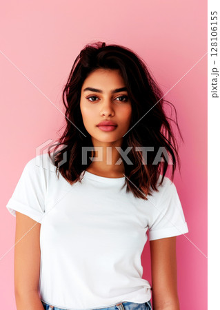 Woman in white T-shirt on isolated background Mockup. generative ai