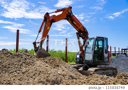 建設工事 重機バックホーと快晴の青空