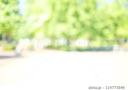 緑の映える明るい遊歩道をやわらかくボカした背景素材