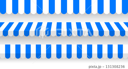 Shop sunshade. Realistic striped cafe awning. Outdoor market tent. Roof canopy. Summer street store