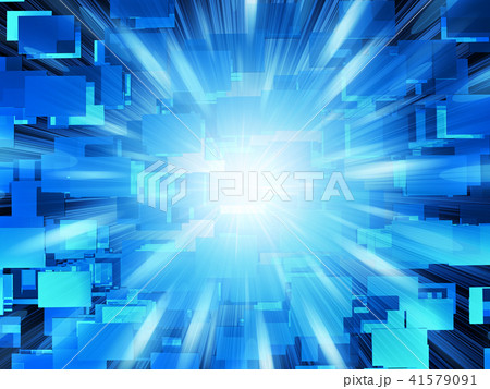 AI生成画像 青い未来都市の中を駆け巡る光通信のイメージ